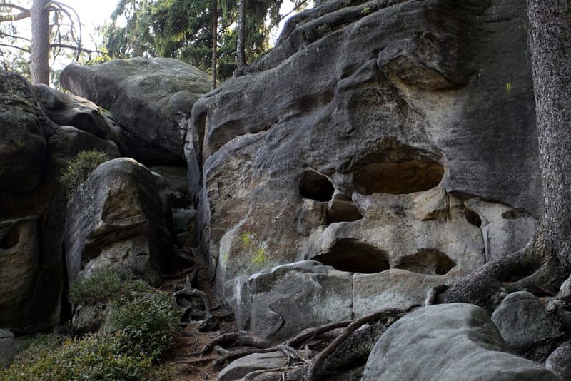 Během války se ve zdejších skalách skrývali místní obyvatelé a možná i z této doby pochází některé názvy skalních útvarů a pověsti k nim se vážící.