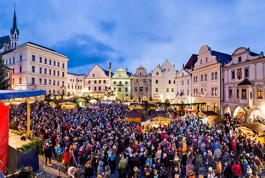 Český Krumlov je pohádkové město a na Vánoce této své pověsti určitě dostojí. Na staročeský trh na náměstí Svornosti dojdete dlážděnými uličkami a jen těžko bystě hledali místo více protkané sváteční atmosférou. Se svařákem či vánočním punčem v ruce (a kupou cukroví v kapse) se projděte až na zámecké nádvoří, kde na vás bude čekat řemeslný jarmark. Za zvuku koled si můžete užít také živý Betlém, kde vám přiblíží prastarý biblický příběh tanečníci a hudebníci.