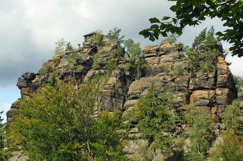 Třetí z vyhlídek v okolí Jetřichovic. Původní název byl Vysoký kámen či Ostroh, ovšem dnes výrazný pískovcový vrch nese název po knížeti R. Kinském, který skálu navštívil v roce 1824 a nechal tu zbudovat vyhlídku. Výhled je do všech stran. Nutno říci, že výlez na skálu je trochu náročnější – místy schůdky, jinde se ale leze přímo po skále za pomoci zábradlí. Nedoporučuji tam lézt, když je skála mokrá, může klouzat.