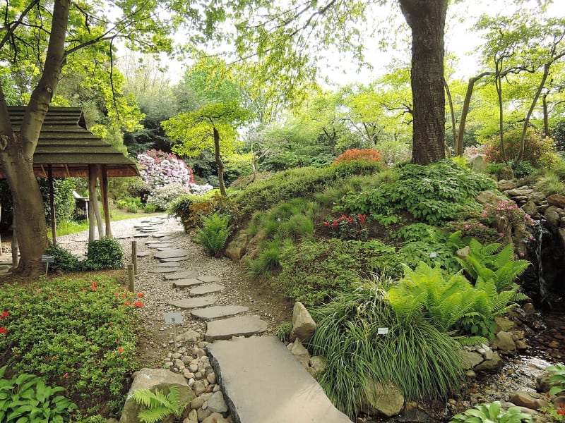 Ve venkovní expozici se nachází 15 000 druhů stromů a květin, čímž je ideálním místem k procházce, odpočinku, relaxaci či kochání se krásou přírody. Pro meditaci je jak stvořená Japonská zahrada s rododendrony, pivoňkami, japonskými javory. Navíc z horní části zahrady se naskýtají pěkné výhledy na Prahu.