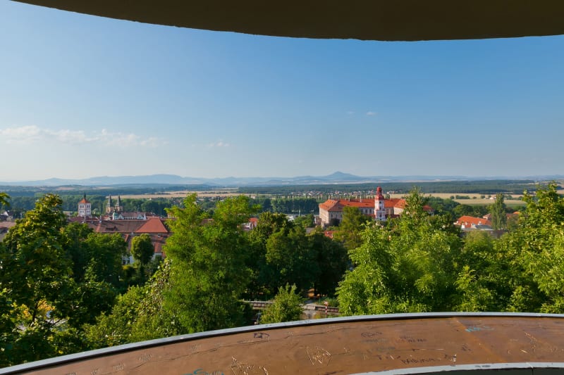 V dnešní době je sice již výhled z rozhledny, pojmenované po zakladateli místní občanské záložny, značně omezen, nicméně i přesto si mohou zájemci prohlédnout České středohoří, horu Říp, známý hrad Hazmburk či nedaleké Litoměřice a vrch Lovoš. Za dobrého počasí je možné spatřit i vrcholky Krušných hor a Ještěd.