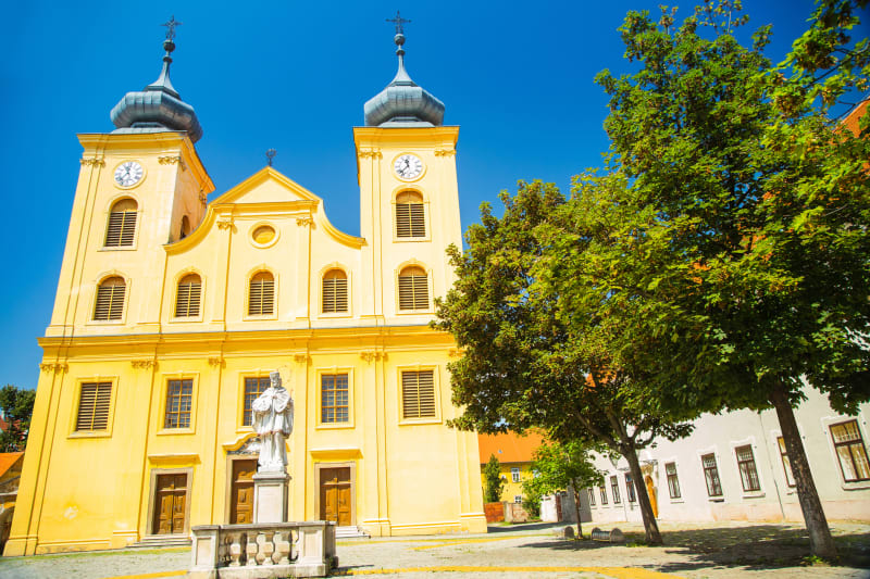 Kostel vznikl v 18.století díky jezuitům. Poznáte ho snadno dle žluté barvy a dvou 47 metrů vysokých věží, které dominují městu. Navíc se každý pátek v 11 hodin můžete zaposlouchat do vyzvánění zvonů, symbolizující vzpomínku na osvobození od Turků, které proběhlo v 17.století. Zvony začaly zvonit vítězství v době, kdy poslední Turek opustil město. K tomuto tématu se v kostele nachází i obraz na hlavním oltáři.