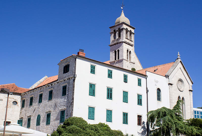 Klášter pochází z konce 14. století. V interiéru nejvíce zaujme malovaný dřevěný strop z roku 1674. Povšimněte si ale i fresek či zajímavých barokních obrazů. Kostel vznikl na památku sv. Nikoly Tavelica, františkánského misionáře umučeného koncem 14. století. Knihovna, která ke klášteru patří, uchovává 140 prvotisků a také ručně psané kodexy.
