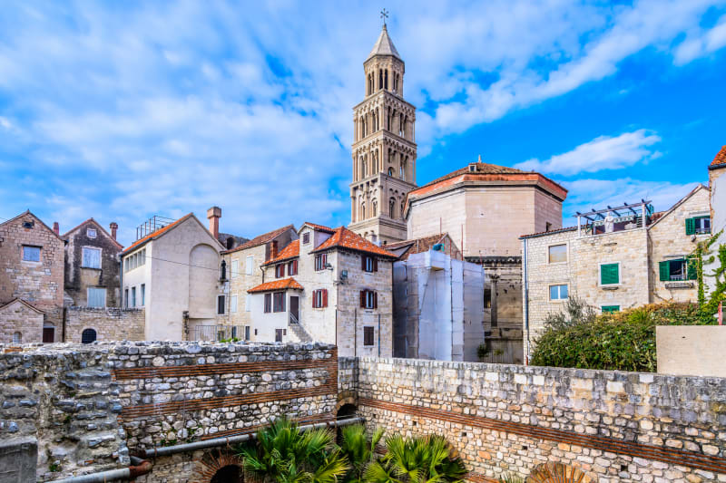 Katedrála sv. Domnia funguje od 10. století, ale ještě předtím tu bývalo mauzoleum císaře Diokleciána. Uvnitř budete obdivovat její monumentálnost umně spojenou s drahým vybavením interiéru. Celý její vnitřní prostor dělí dvě řady korintských sloupů. Postranní oltáře vám ukáží podobu patronů měst – sv. Domnia a sv. Anastázie. V interiéru najdete i některé cenné kousky jako jsou lavice pocházející ze 13. století. Ze stejného období jsou i scény z Kristova života vyřezané na dřevěných vchodových dveřích.