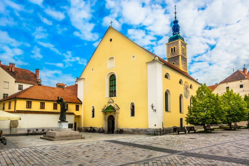 Kostel začal být stavěn v roce 1650 v barokním stylu dle návrhů architekta Petera Rabba z Grazu. Kostelní věž se svou výškou 54,5 metrů je nejvyšší v celém městě. Nejzajímavější místo v interiéru kostela představuje kazatelna, ukázka mistrovského díla manýrismu. Sochy zpodobňují apoštoly a františkány. Toto skvostné umělecké dílo bylo vytvořeno v druhé polovině 17. století zřejmě po požáru.
