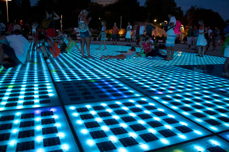 Další výtvor již proslulého Nikola Bašice se nachází jen malý kousek od mořských varhan. Tentokrát jde o dvacet dva metrů široký kruh v dlažbě složený z více než 300 vícevrstevných skleněných desek, které využívají solární energii během dne a pak v noci předvádí neuvěřitelnou světelnou show, která má připomínat sluneční soustavu. Místo je při západu slunce a po něm plné turistů, nadšených dětí a dalších lidí uchvácených světelným představením.