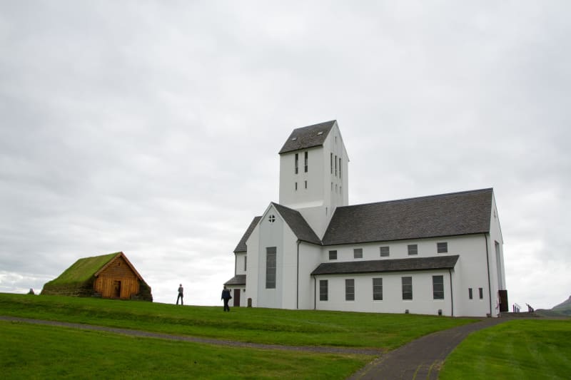 Známou se tato vesnička stala díky svému kostelu, který byl postaven v 11. století a stal se biskupským sídlem. Vznikla zde také první škola na Islandu, a tak se toto místo stalo centrem vzdělanosti až do 18. století, kdy zde zasáhlo silné zemětřesení. Kostel byl však nakonec opraven a nyní je turisty obdivován pro svou velikost a i prostou, ale i tak zajímavou výzdobu. V letních měsících je v něm vystavován i sarkofág z 13. století.