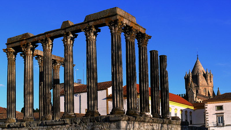 Jedna z nejlépe zachovaných římských památek v Portugalsku a pravděpodobně i na Pyrenejském poloostrově. Někdy se jí také nazývá chrám Diany. Jedná se o pozůstatky chrámu, respektive o 14 korintských sloupů z doby přelomu 2. a 3. století. Tento chrám později dokonce sloužil jako městská jatka.