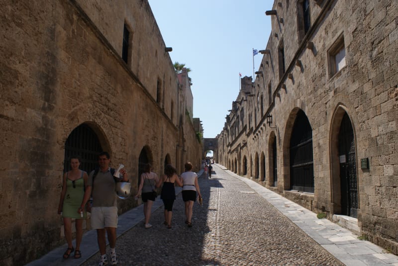 Vstupte do míst, kde ještě dnes vyzařuje aura vznešenosti a úcty, byť tu nyní najdete mnoho moderních kanceláří. Ulice rytířů je jediná plně zachovaná obytná ulice pocházející z 16. století v Evropě. I dnes tu lze spatřit budovy ve stylu pozdní gotiky. Dříve tu stávaly rezidence jednotlivých řádů, které se dělily dle jazykové a etnické příslušnosti do sedmi skupin, označovaných jako „jazyky“. Mohli jste tu tak najít rezidenci anglickou, německou, francouzskou, italskou, provensálskou, aragonskou, auvergneskou a každá skupina chránila určitou část hradeb. Řády johanitů tu sídlili do té doby, než byly Turky donuceny odejít na Maltu. Zřejmě nejvíce vás upoutá Rezidence Francouzů, která je nejzdobnější a také nejvíce nápadná.