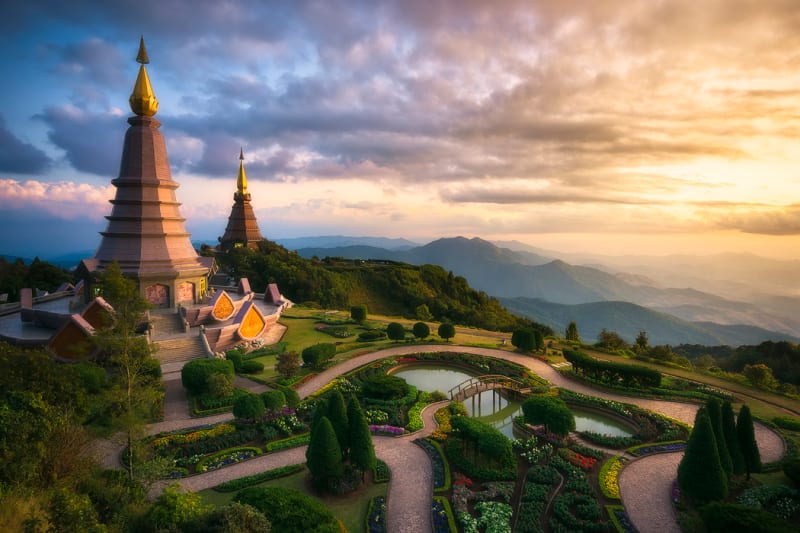 Zahrady nabízejí překrásné obrazce z květin a za jasného dne se vám naskytne nádherný výhled na severní Thajsko a západní hory Barmy. Pokud nespěcháte a nevadí vám jízda domů za tmy, můžete si počkat na západ slunce.