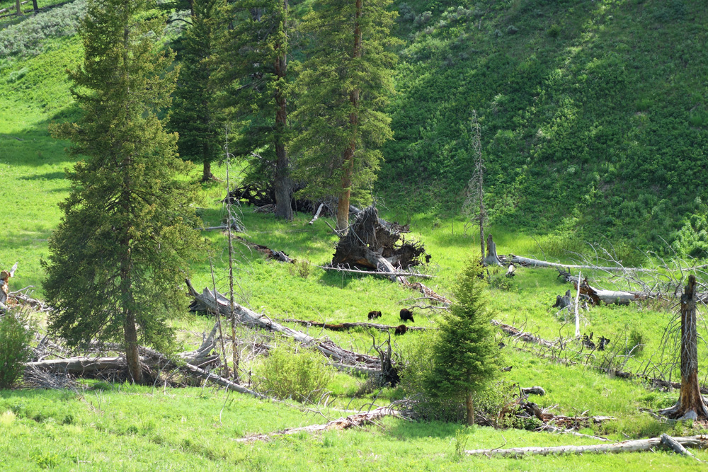 I když je to trochu smutné, tak právě stojící auta při krajnici jsou právě tím ukazatelem, že se zde nachází medvěd, jelen, bizoni atd. My jsme našeho prvního méďu uviděli v okolí Lamar Valley. Nejnádhernějším zážitkem byla však naše první medvědice se třemi mláďaty u Petrified Forest.